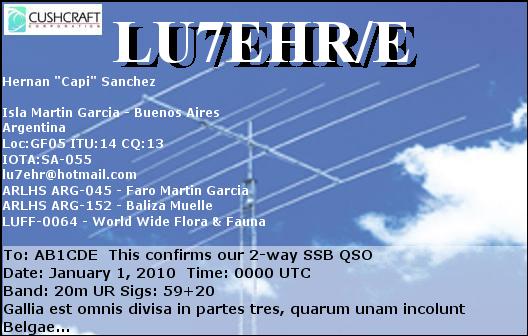 QSL via LOTW/EQSL/LDA/LU7EHR